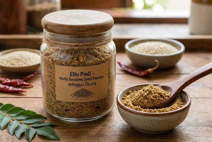 Ellu Podi delivers a nutty, aromatic flavour thanks to roasted sesame seeds and spices. Mix with rice or sprinkle over vegetables for enhanced taste.