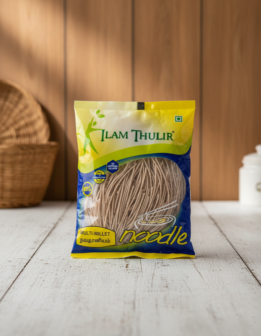 Why choose one when you can have the combined power of several millets? Our Multi Millet Noodles are a wholesome blend, typically featuring grains like Ragi (Finger Millet), Bajra (Pearl Millet), Kodo Millet, Barnyard Millet, and Foxtail Millet. This medley ensures a wide spectrum of essential vitamins, minerals, and fibers in every single serving.